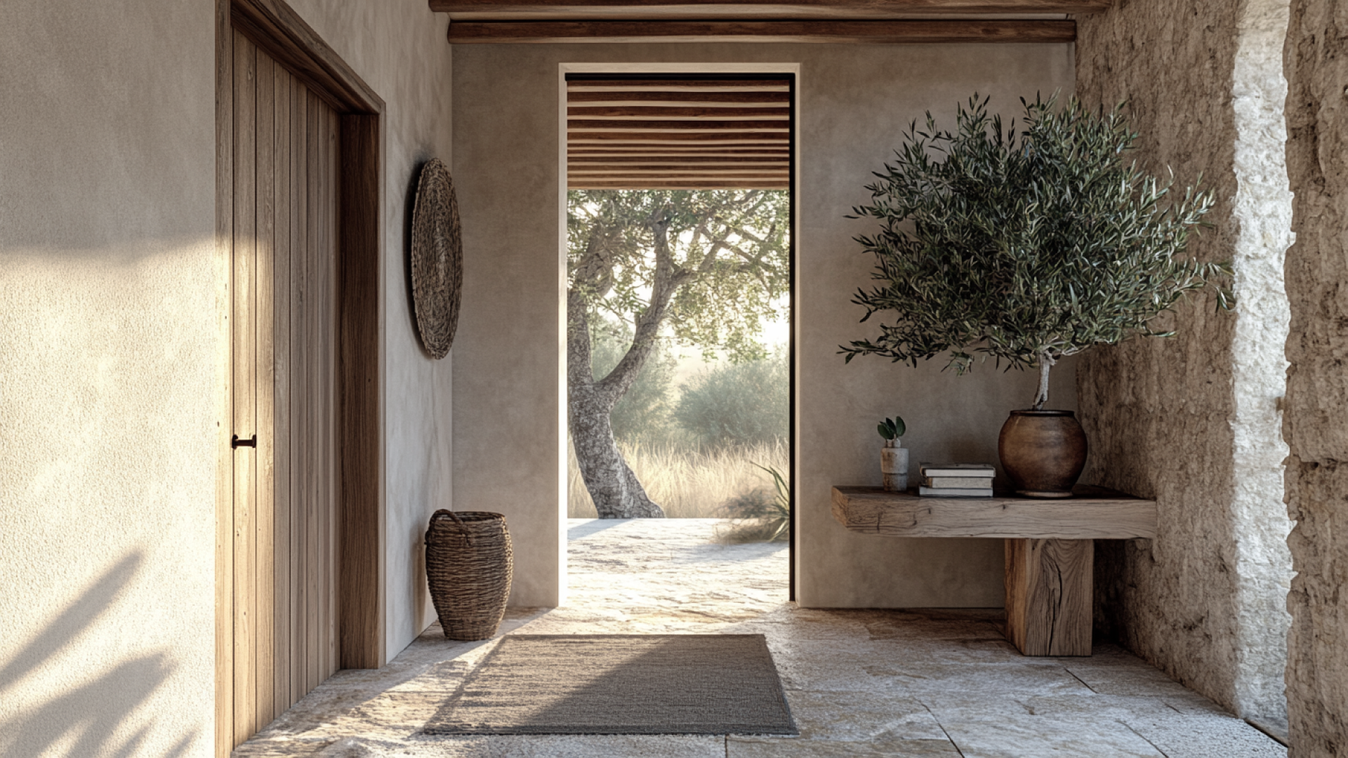 The bedroom adopts a minimalist approach to create a calming atmosphere. Designed with natural wood and a soft color palette, this space receives plenty of natural light thanks to its large windows. The view of the olive garden offers a peaceful sleeping environment, while the comfortable bed and smart storage solutions prioritize functionality.